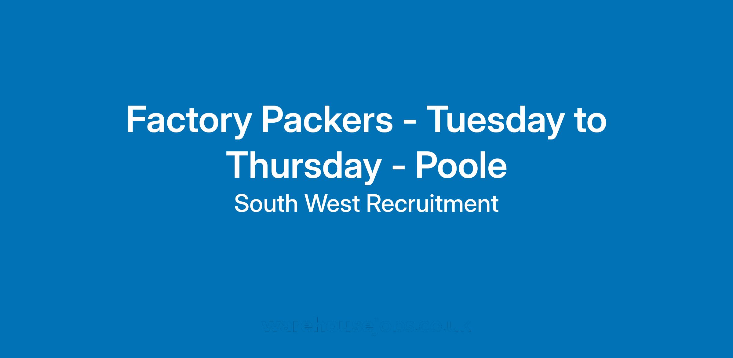 Factory Packers Required for a prominent national food manufacturer in Poole, Dorset.