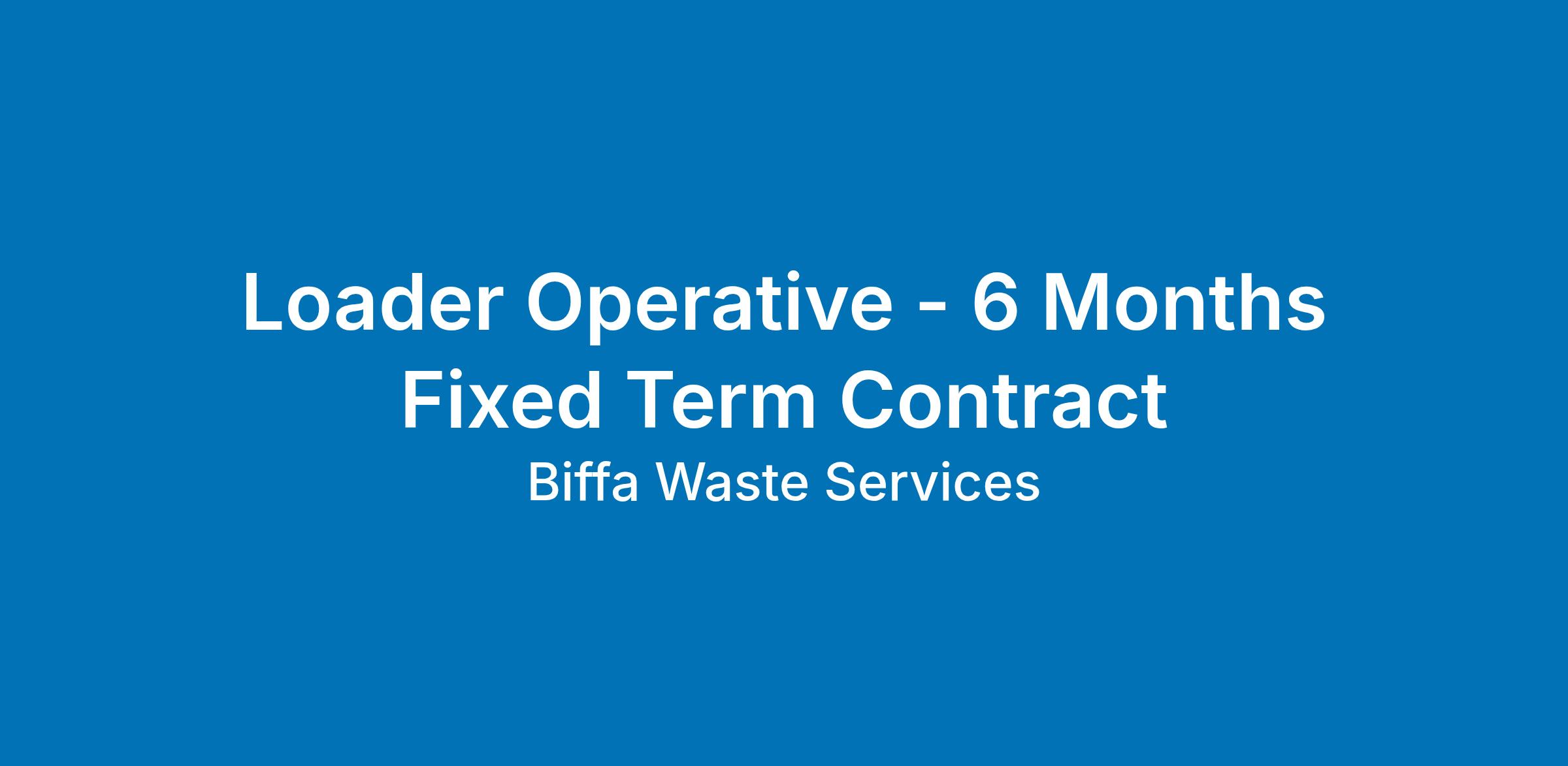 Biffa Loader Operative - 6 Months Fixed Term Contract - Immediate start