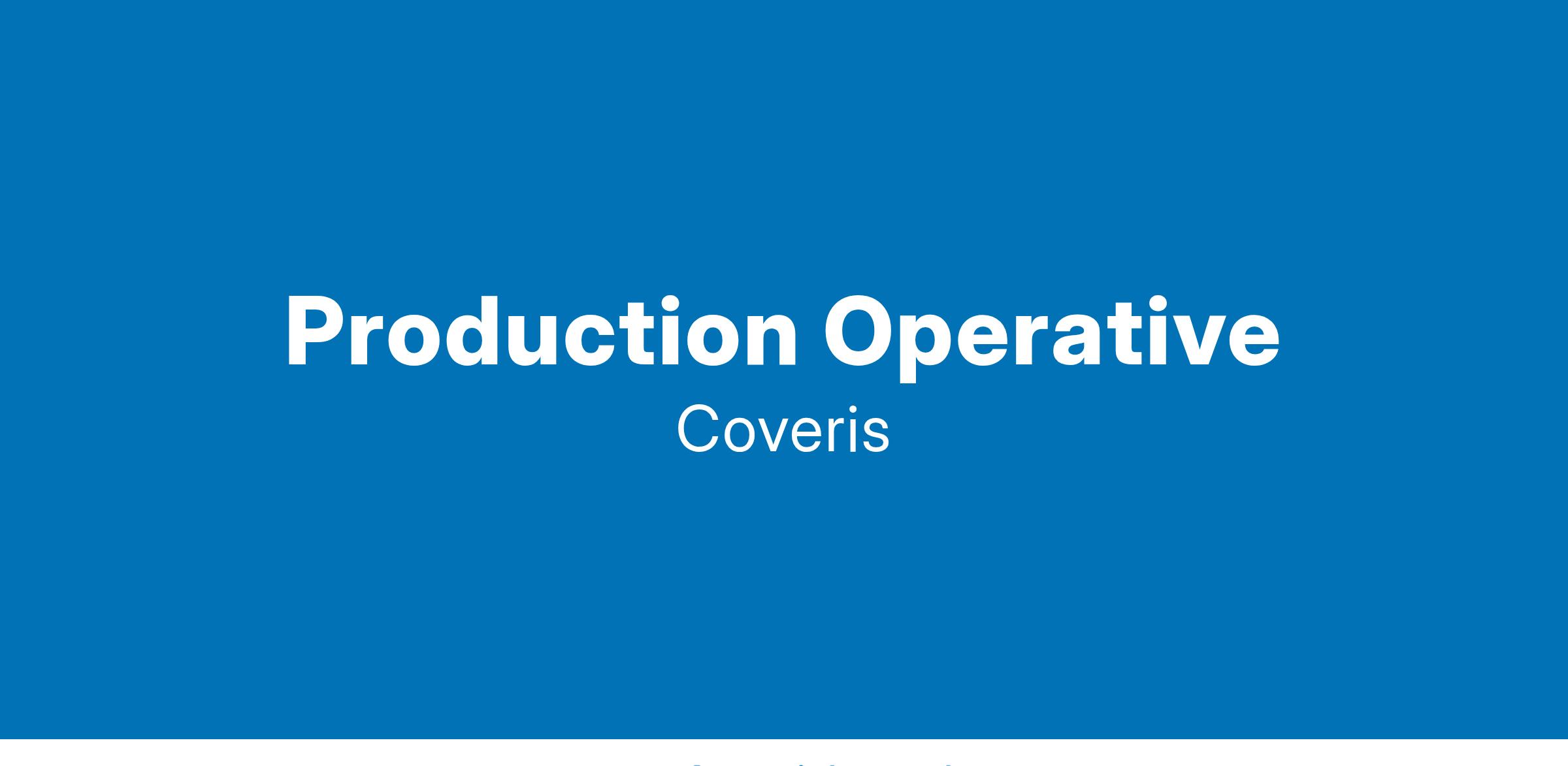 Selection: We appreciate you taking the time to apply for the Production Operative role at Coveris. We receive a high volume of applications and we pride ourselves in taking the time to read every one. However, unfortunately, we are unable to provide individual feedback to every application. If you are shortlisted for the next stage, then expect to hear from us within 7 days of your application having been submitted.
